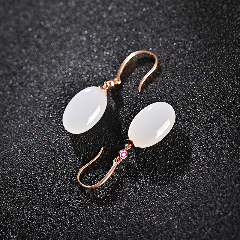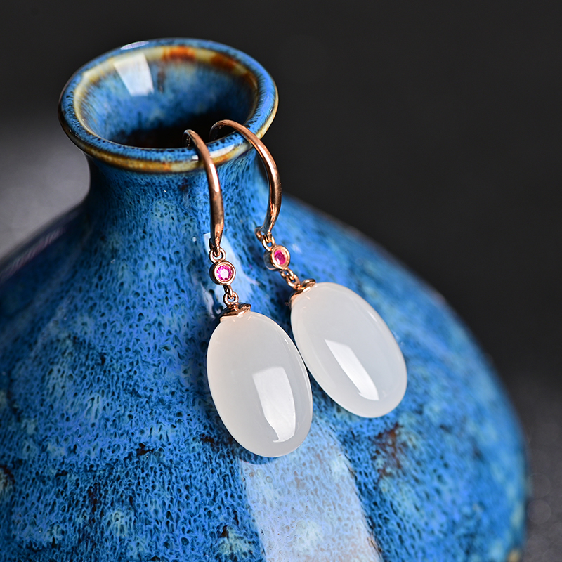 和田白玉金镶耳饰