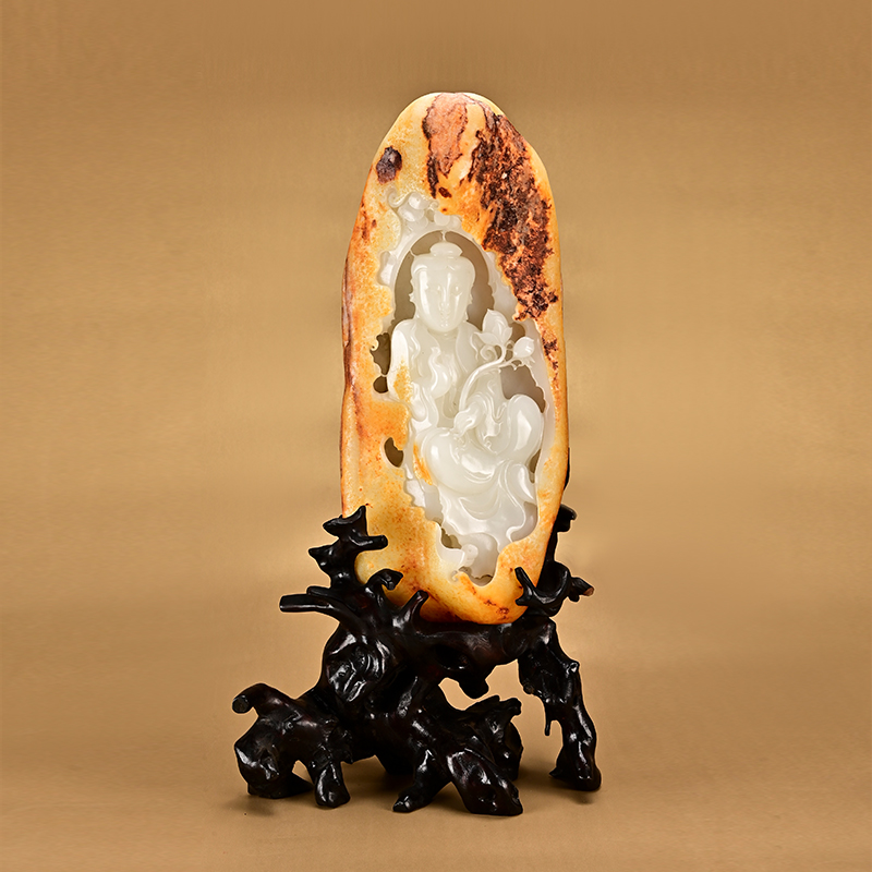 白玉籽料观音摆件