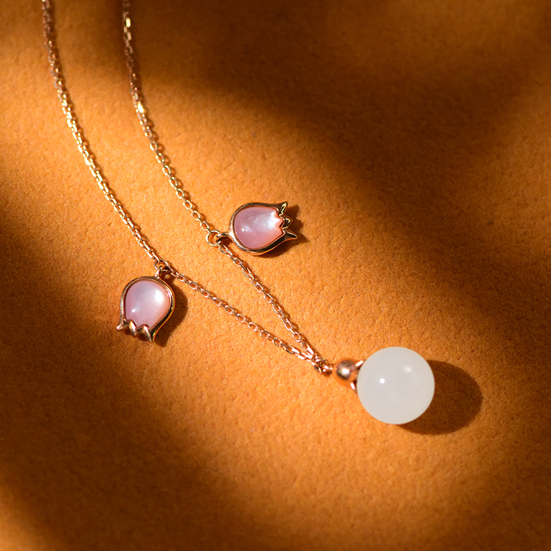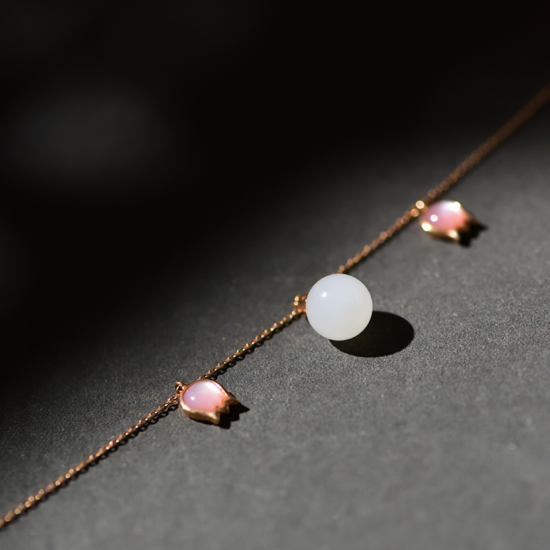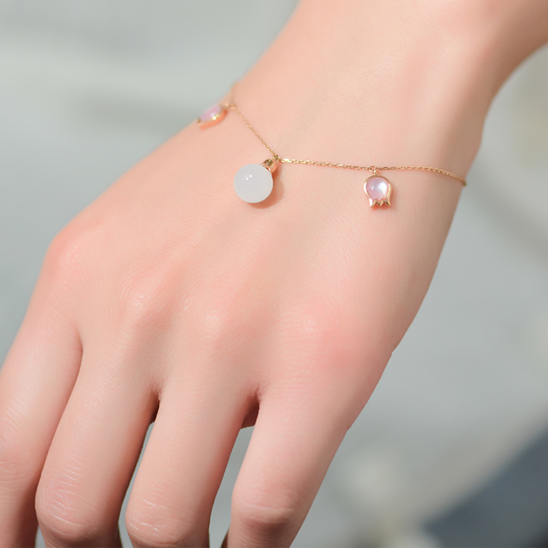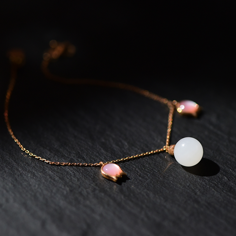 芙蓉花白玉金镶手链